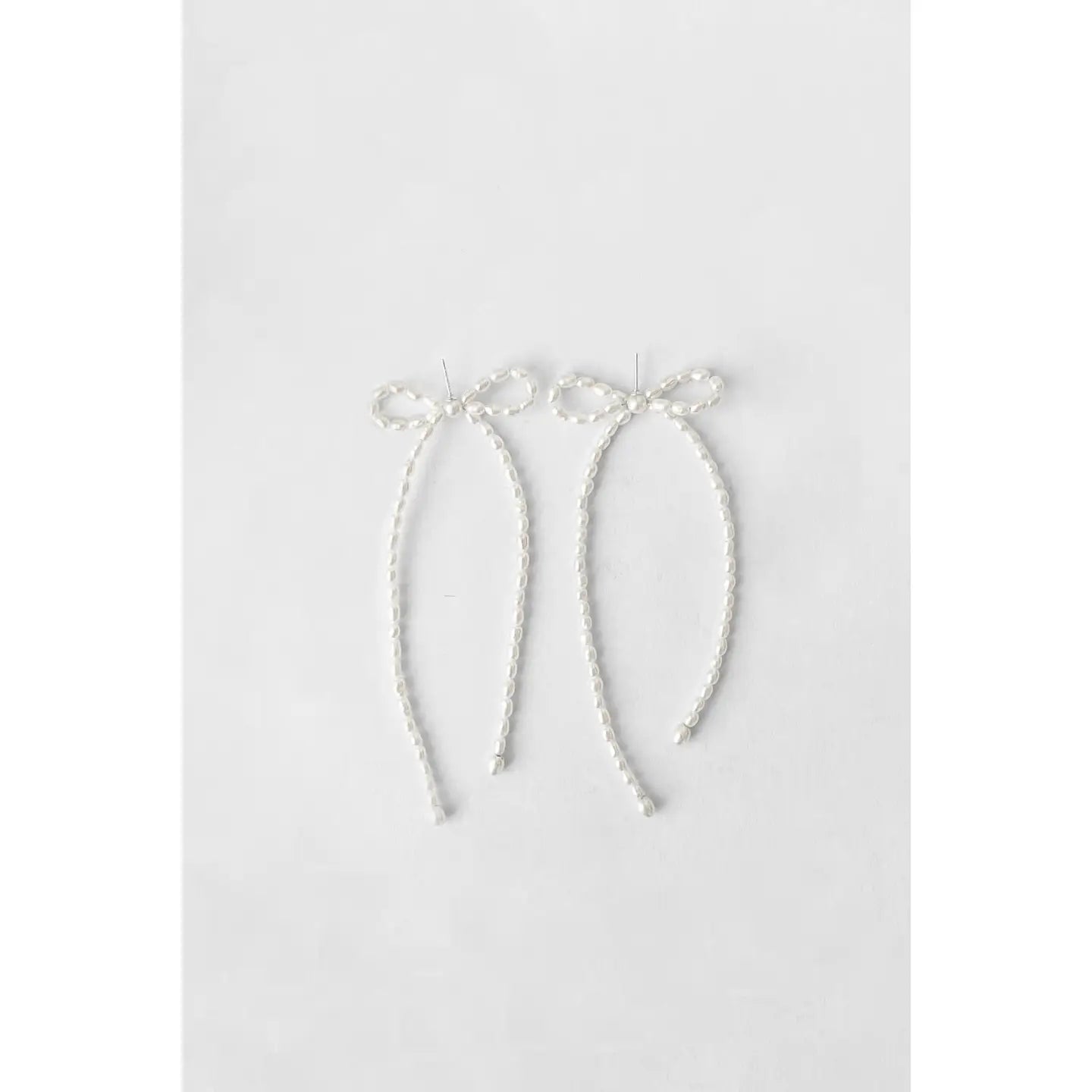Bow drop earrings made of Rice pearl. Made in Canada by Kara Yoo.