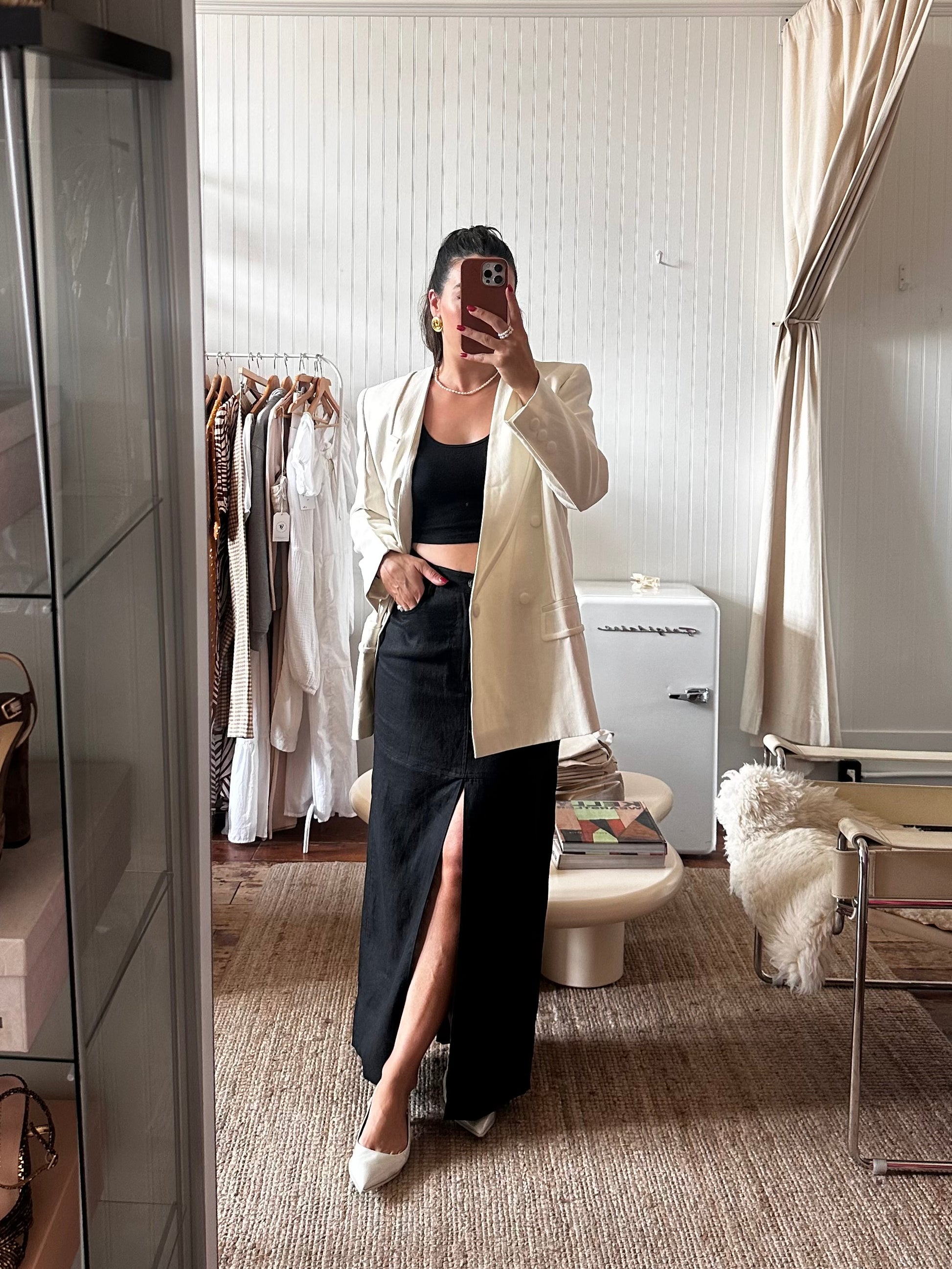 A double breasted white blazer by Fendi.